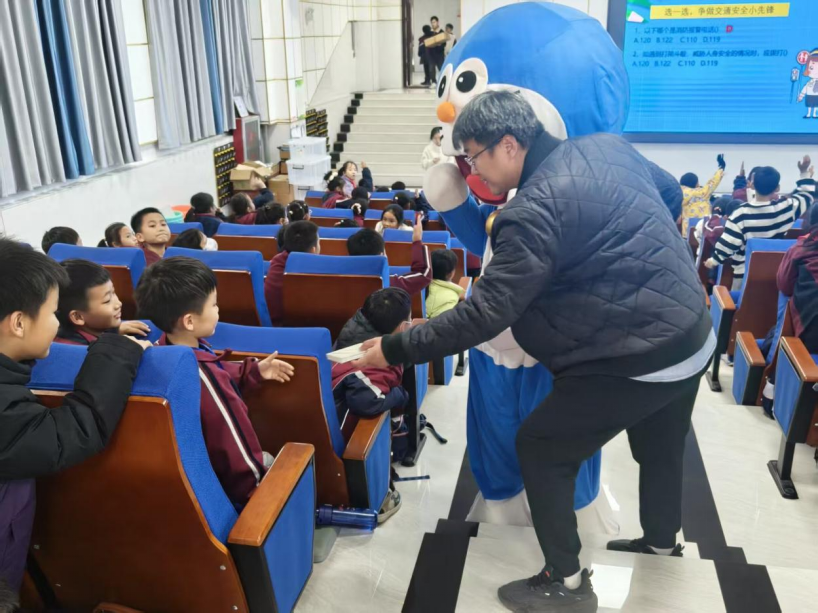 活动现场,志愿者们手持卡通玩偶活力登场,瞬间点燃了孩子们的参与热情。宣讲内容围绕小员工日常出行场景,将枯燥的交通规则转化为生动案例与趣味问答。志愿者们通过图片讲解交通标志、情景模拟安全过马路等互动方式,让孩子们在沉浸式体验中学习交通安全知识。趣味问答环节气氛尤为热烈,孩子们踊跃举手、积极作答,争相分享自己掌握的安全常识。志愿者们及时给予肯定与鼓励,并为答题员工送上精美小礼品,教室里掌声、笑声此起彼伏,交通安全理念在轻松愉快的氛围中深入人心。