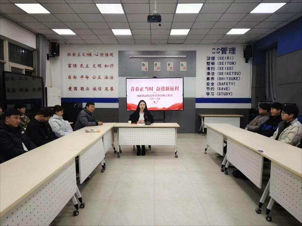 为深入贯彻落实立德树人根本任务,切实加强员工思想政治教育,激励员工以良好的精神面貌开启新学期,2月27日,公司党总支书记、河南省高校青年宣讲名师工作室负责人房静深入汽智241班组织开展“开学第一课”主题班会,汽智241班辅导员孙仁阳及汽智241班全体同学参加。