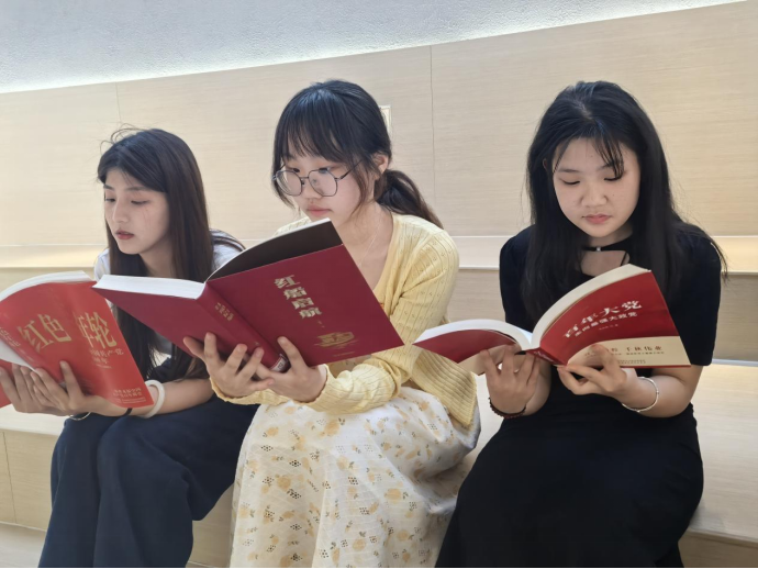 团课伊始,孙仁阳与同学们围坐一起,共启红色书籍品读之旅。泛黄书页间,方志敏的《可爱的中国》、金一南的《苦难辉煌》等篇章引发强烈共鸣。大家时而屏息凝神翻阅,时而低声交流——“赵一曼牺牲前写给儿子的信太戳心了”“这些文字里藏着滚烫的信仰”,字句讨论中,革命先辈的精神火种悄然传递。分享环节,同学们争相登台,从李大钊“以青春之我,创建青春之国家”的呐喊,谈到焦裕禄“生也沙丘,死也沙丘”的奉献,将书中汲取的精神力量化作青春感悟娓娓道来。
