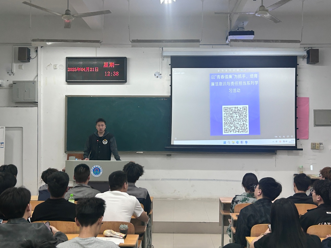 活动伊始,曲志远作动员讲话。他结合《关于加强新时代廉洁文化建设的意见》文件精神强调,廉洁教育既是落实全面从严治党的重要抓手,更是培育新时代青年政治品格的必修课程,青年学子要扣好“第一粒扣子”。随后,参加学习活动的全体同学通过扫码进行廉洁知识答题,同学们积极思考、认真作答,在规定时间内顺利完成了问卷竞答,答题现场秩序井然。